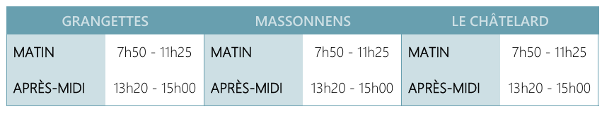 Horaires des classes dès le 05.01.2026 :